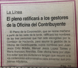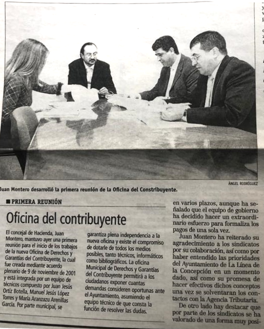 Casi 19 años de esta noticia, cuando se creó la Oficina del Contribuyente, algo que, por lo que en aquél momento pudimos comprobar, sólo existía en La Línea y en Barcelona. Hoy las Oficinas de Defensa del Contribuyente son algo habitual en todas las administraciones.